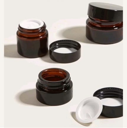 Tarros de vidrio ámbar con tapa negra