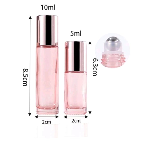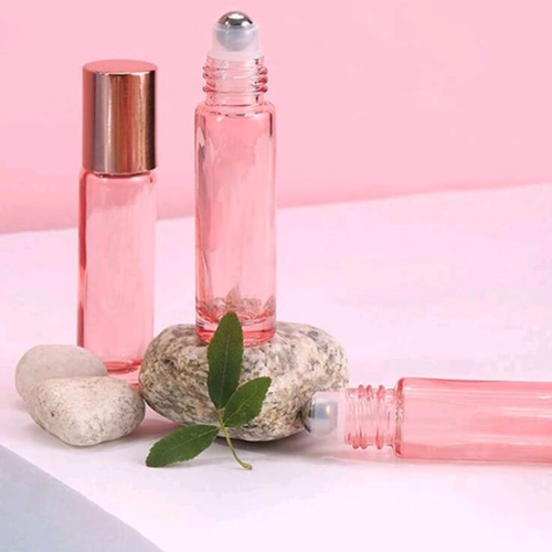 - Roll-on de vidrio rosa 10ml, tapa rosaca